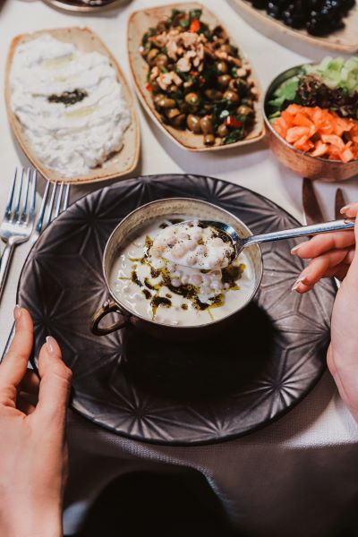 Menü; çiğ köfte, yoğurtlu firik ve cevizli zeytin piyazı gibi serpme mezelerle başlarken, yuvalama ve çağla aşı gibi geleneksel başlangıçlarla devam ediyor. Gavurdağ salatasının ardından, içli köfte, Antep peynirli börek ve omaç gibi yöresel tatlar öne çıkıyor.